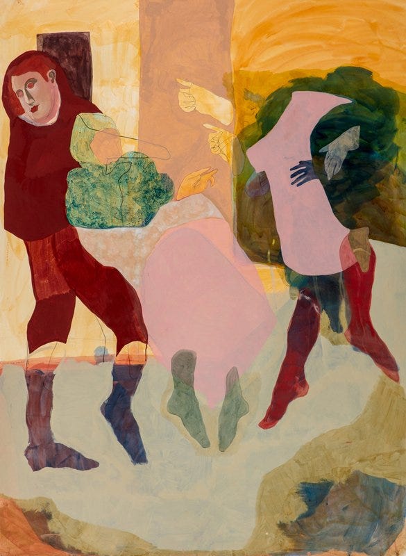 Ella’s repertoire of works are contemporary concepts that explore medieval narrative and costume. Her compositions are tightly framed, shallow spaces that suggest constant interplay between the realms of drawing, painting and design.