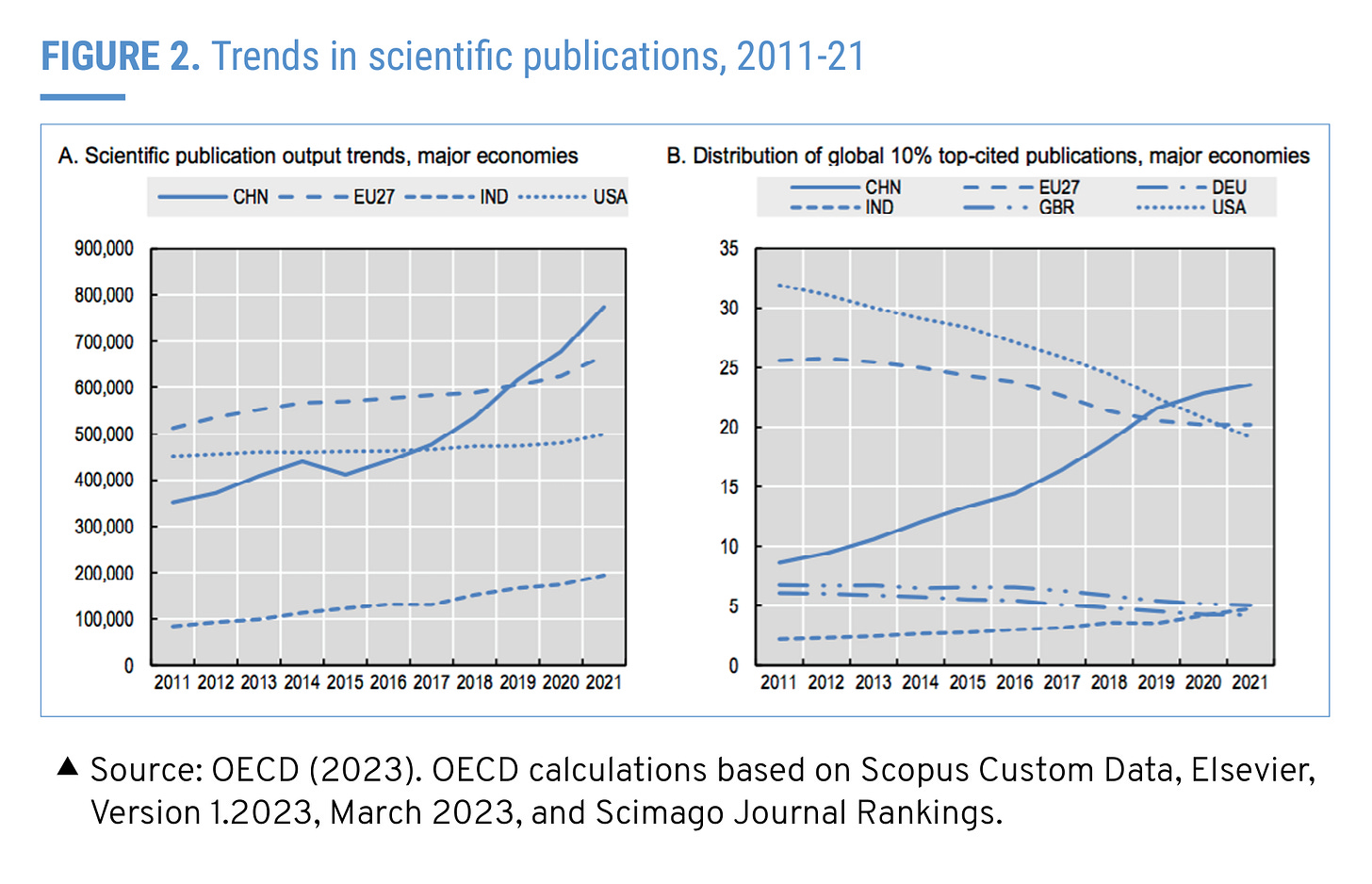 In ten years of growth, Chinese scholars overtook both their US and EU counterparts in scientific publications: