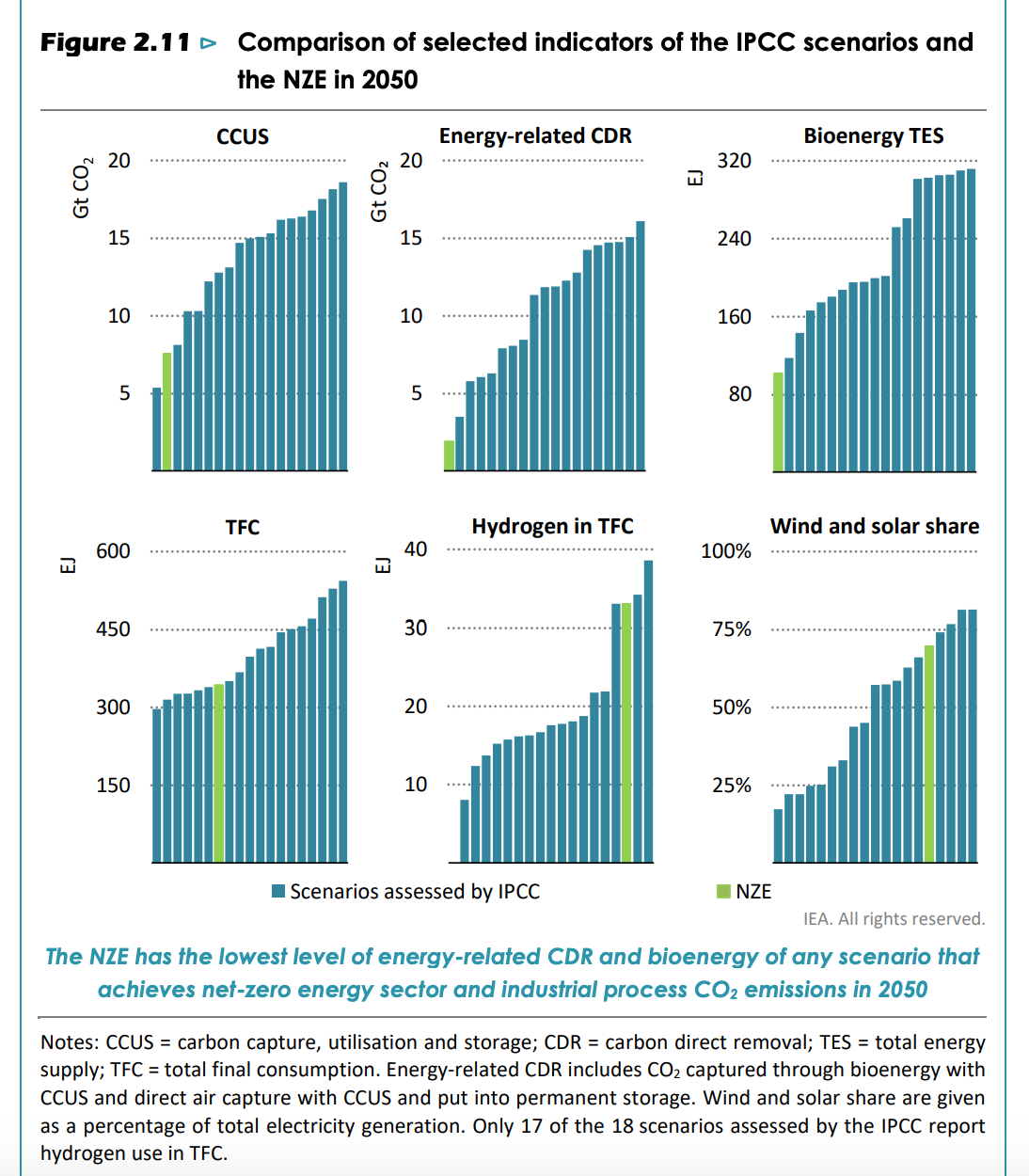 As the IEA’s summary makes clear, these 18 scenarios differ substantially in basic parameters even including the share of wind and solar in the final power mix.