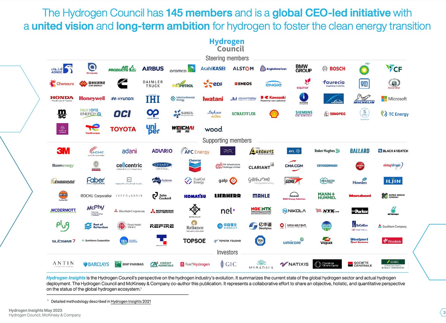 In recent years a huge coalitions of corporate interests has assembled behind green hydrogen. The Hydrogen Council, launched at Davos in January 2017, has grown into a massive corporate array advised by top tier consultancy McKinsey.