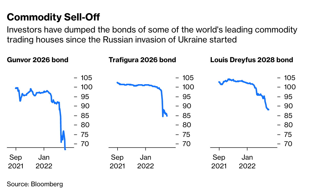 One marker is the price of debt issued by major trading houses. As commodity prices have surged the value of IOUs issued by the major companies that deal in commodities have plunged.