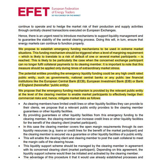 This is the background against which the European Federation of Energy Traders wrote its letter of March 8th appealing for central bank intervention, to offer lender of last resort facilities to major commodity traders.