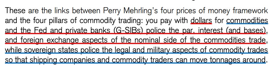 The importance of Pozsar’s latest note is that he expands Merhling’s money framework to explicitly address both the “real side” of the economy and its political frame.