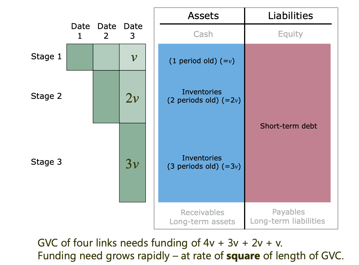 Shin showed how extending supply chains increased the demand for credit by the square of the length of the chain.