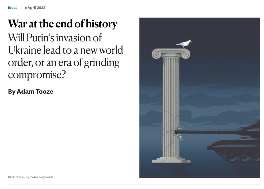 With Russia and Ukraine locked in battle, the question becomes how will the Western powers respond? It is up to them/us! As I put it in the New Statesman article, the End of the End of History will be what we make of it. That is what is at stake both in the war and even more in the peacemaking that must follow. How will order and freedom be combined in Europe?
