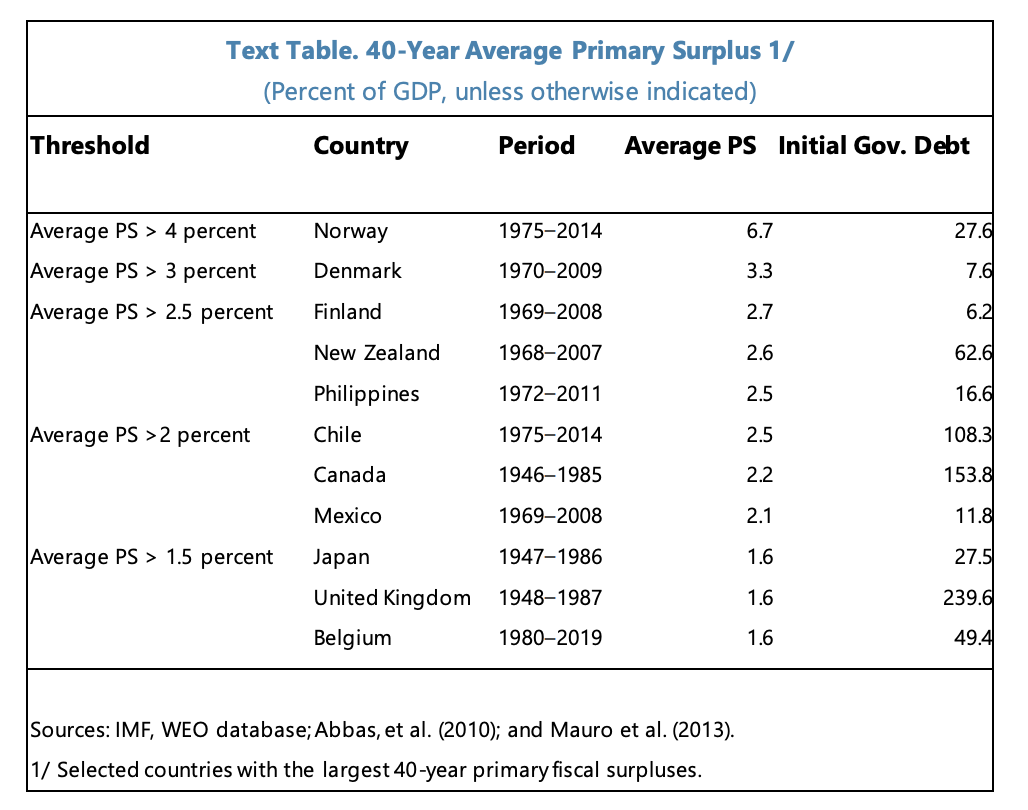 In fact, in the economic history of comparable societies, the IMF could find only eight examples since 1945 of countries that have managed sustained primary surpluses of more than 2 percent over 40 years. Since 2008 the only country to achieve that feat was oil-exporter Norway, and it fell off the wagon in 2014.