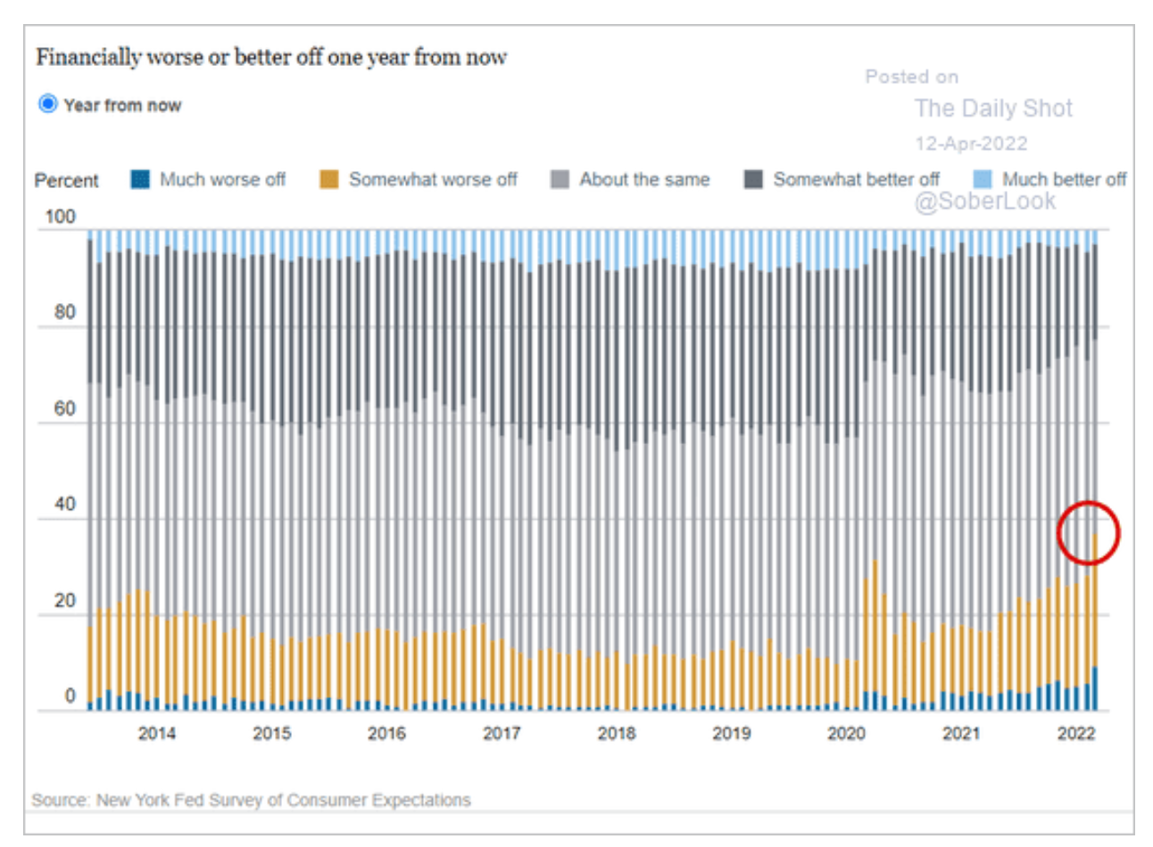The percentage of Americans who expect to be worse off financially in the next 12 months hit the highest level in at least nine years.