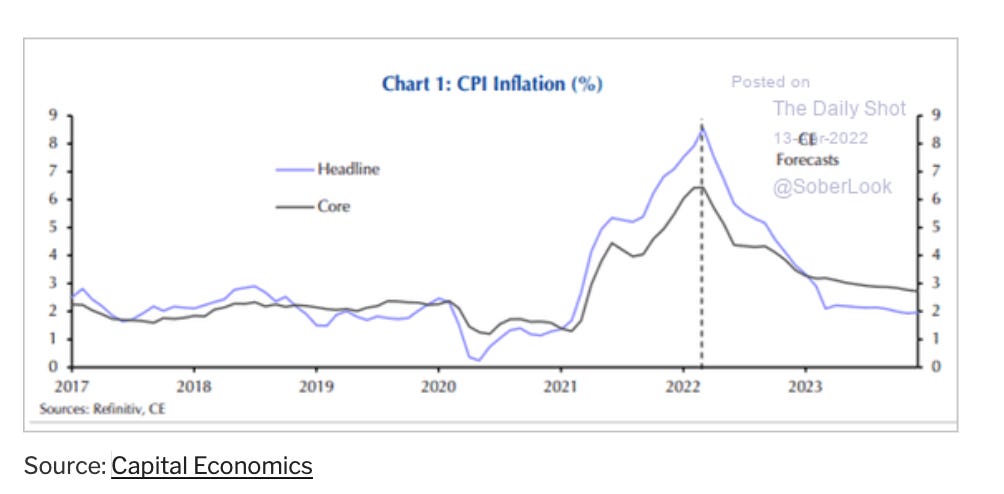 Furthermore, it remains true that though the headline figures are alarming,, most forecasters expect inflation in the US to ebb sharply and to fall close to 2 percent by the end of 2023.