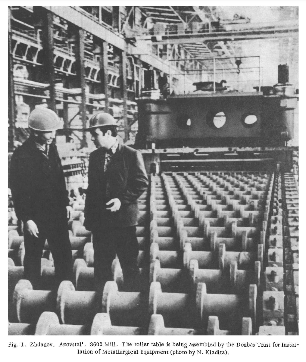 To imagine Azovstal’s birth, consult Stephen Kotkin’s Magnetic Mountain: Stalinism as a Civilization, the classic study of Magnitogorsk, which, according to legend, was inspired by taking office hours with Michel Foucault during a visit to Berkeley.