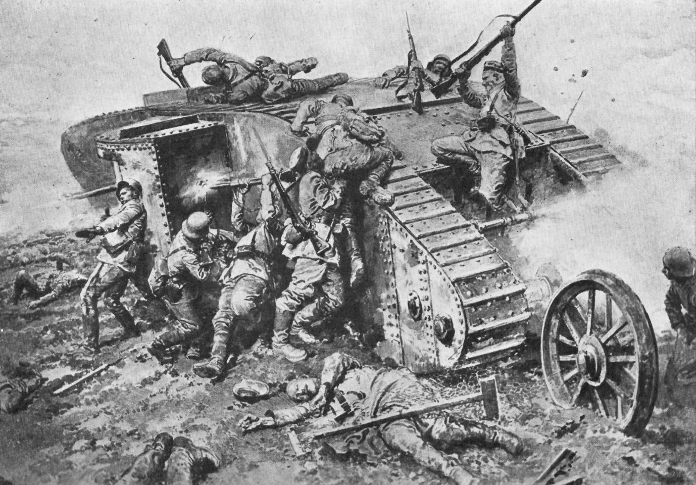 By World War I the infantry dug themselves in, leaving a battlefield shaped by barbed wired and swept by machine gun and artillery fire. To master this new terrain the infantry adopted new, small group, dispersed tactics and to break the deeply defended trench lines World War I gave birth to a new monster - the tank. The tank’s combination of heavy fire power, armor and mobility was radically new.