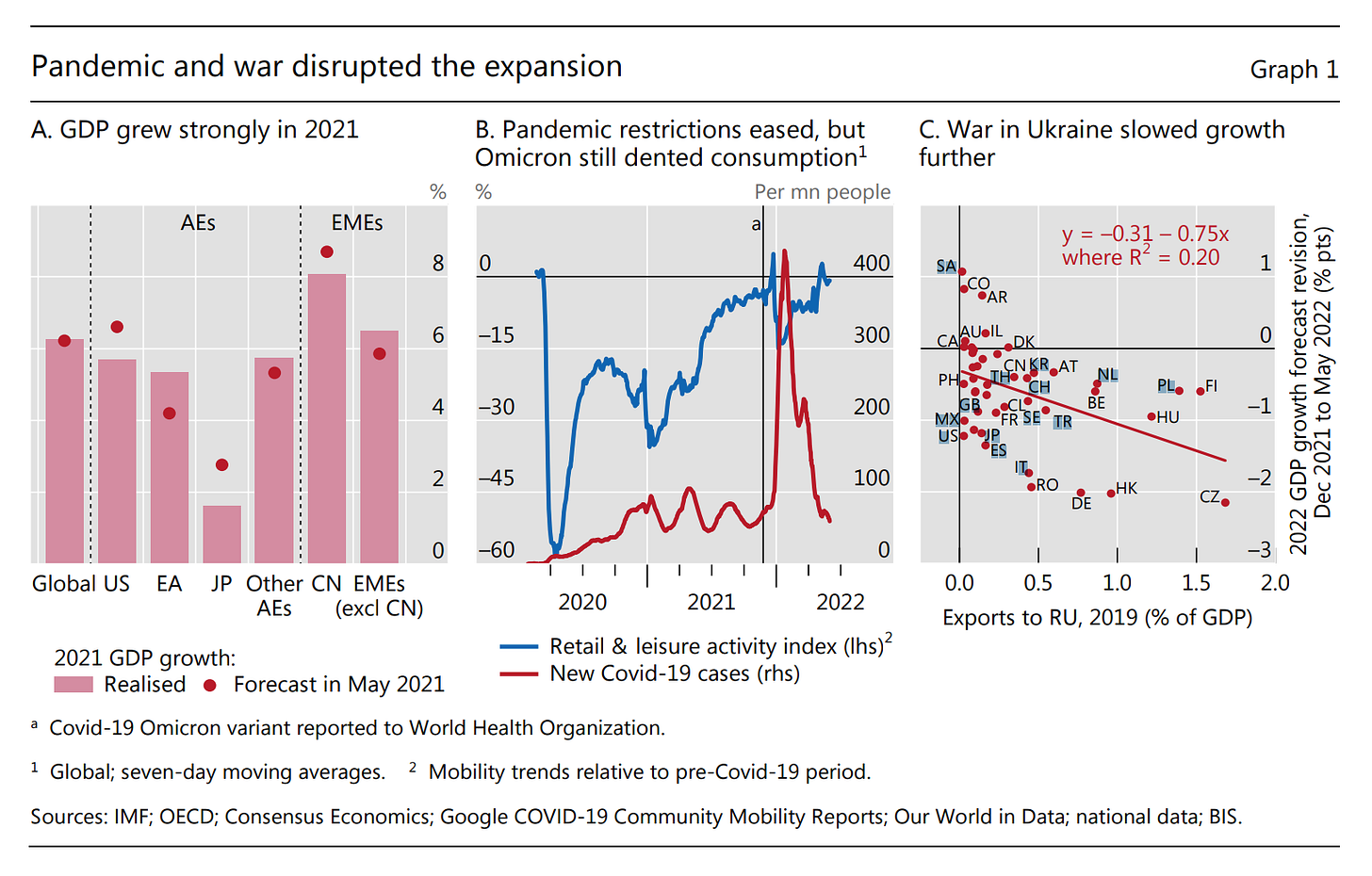 What is driving this? Again the BIS has data to hand. Global data on retail and leisure activity - an astonishing number to have at our finger tips - slowed suddenly over the winter of 2021-2 as Omicron hit. Then came Putin’s war on Ukraine. It is tempting to attribute our entire malaise to this wanton act of aggression, but the data clearly refute that simplistic idea.