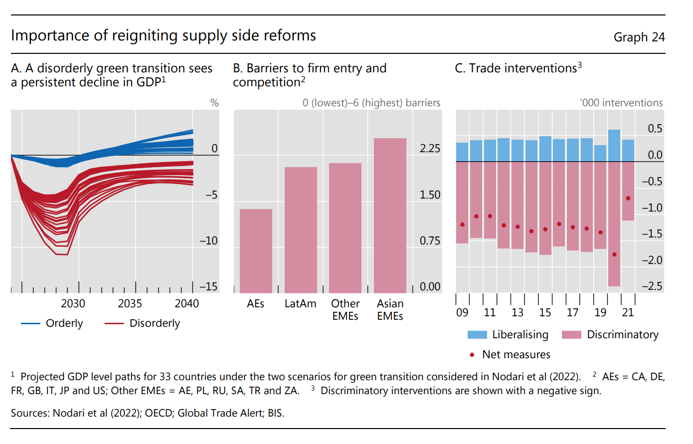 So what does that entail? Well, unsurprisingly, the BIS favors the kind of neoliberal measures that promote competition in markets (panel B) and reduce impediments to international trade (panel C). The former pertains to political economy. The latter to geopolitics. But then look at panel A!
