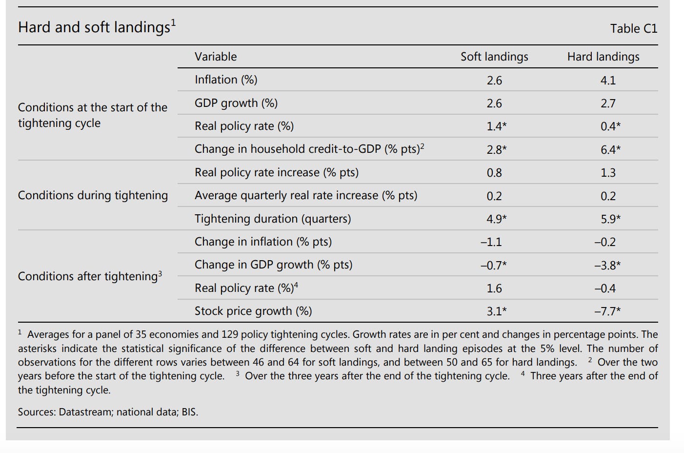 That sounds like good news. A hard landing is not foreordained. Bu what worries the BIS, are the very different conditions in which hard and soft landings occurred.