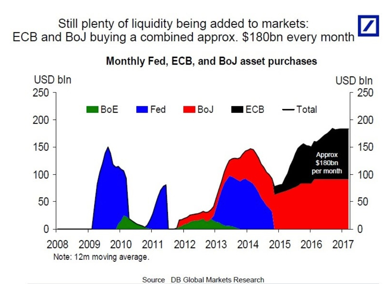 The Fed may be the undisputed leader amongst global central banks and Ben Bernanke led the charge in 2008. But, together, the scale of the ECB and the BoJ’s program bond buying after 2015 dwarfed anything the US had previously attempted.