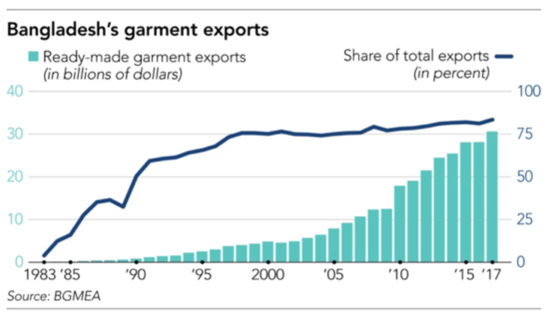 The most remarkable is Bangladesh, whose garment exports have surged spectacularly.