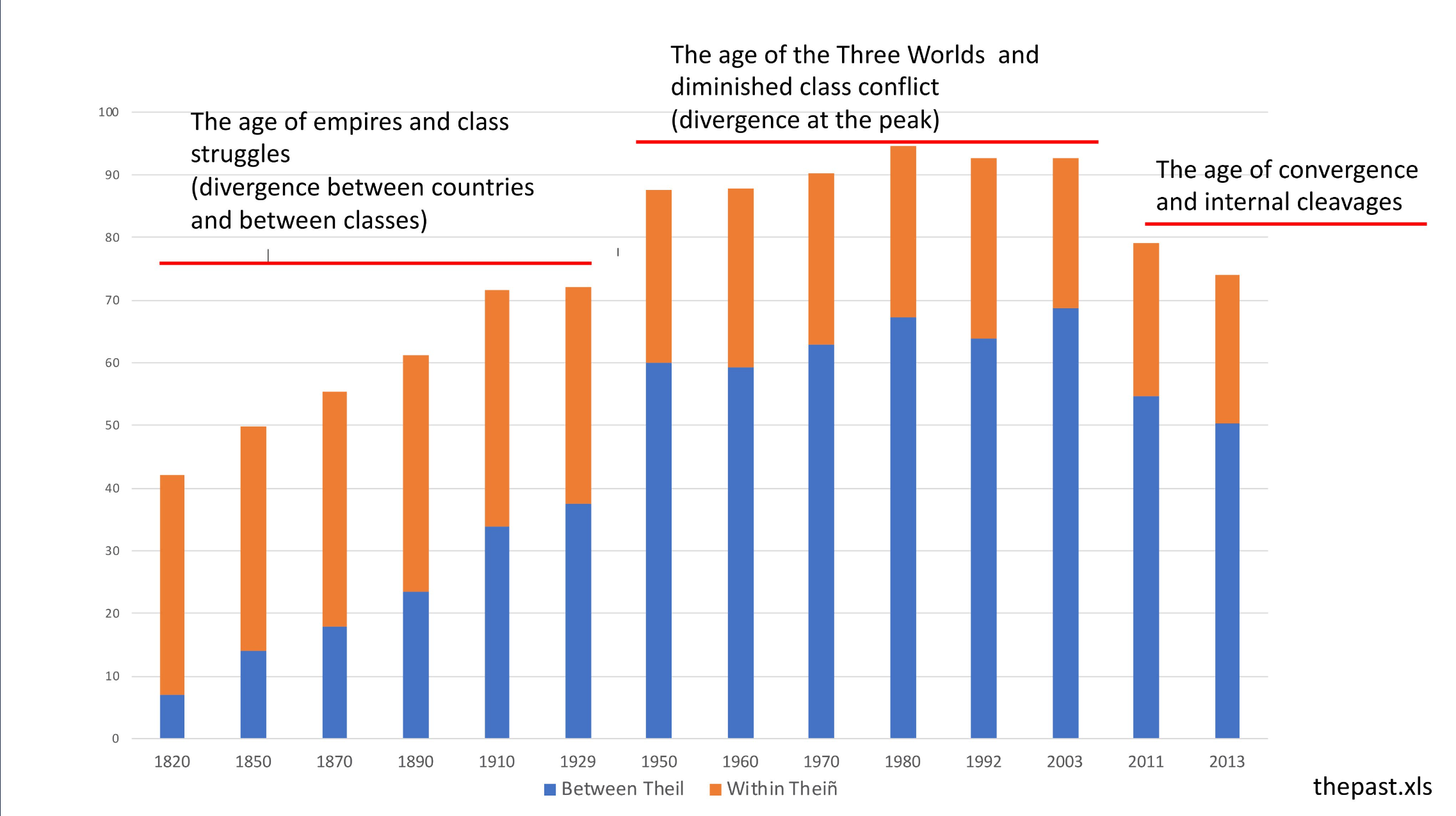 Start with three from the great Branko Milanovic on global inequality as the key to world history. Milanovic divides the history of the last two hundred years into three epochs: The Age of Empires and Class Struggle, The age of Three Worlds, the Age of Convergence.