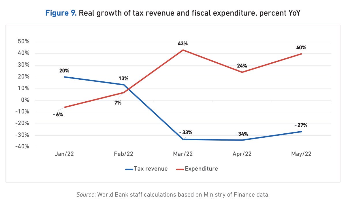 Since the beginning of the war, tax revenue collection has deteriorated significantly, while public expenditure has increased sharply.