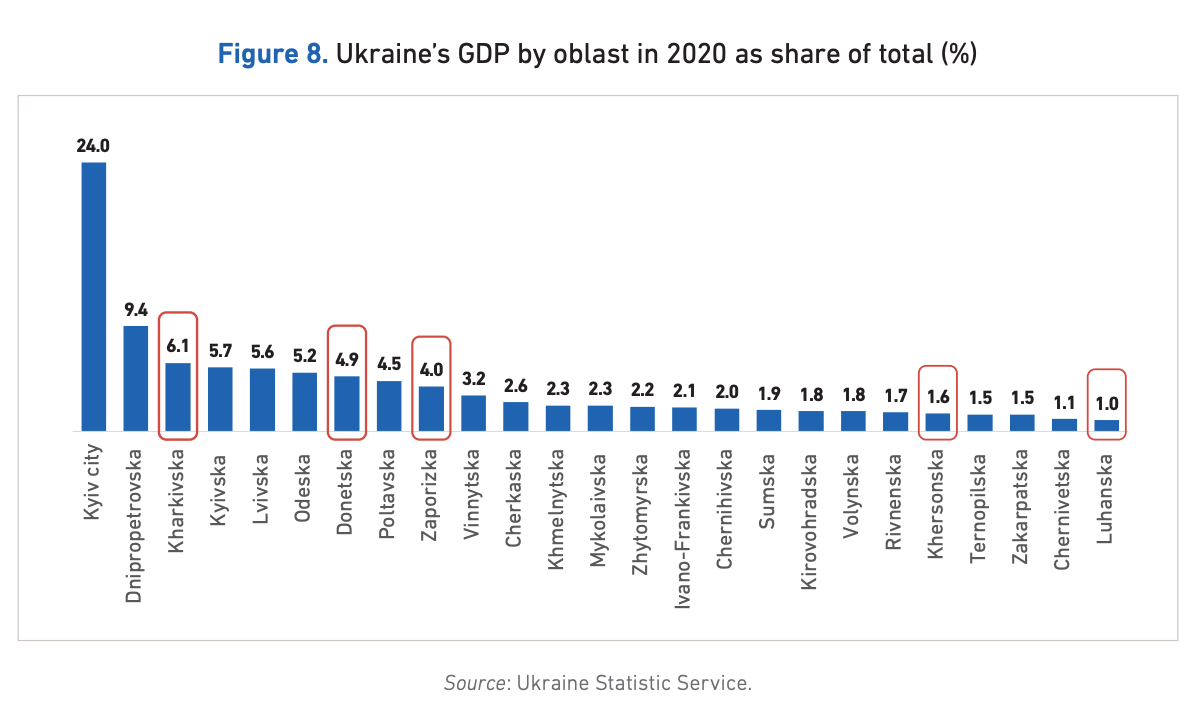 The hit to Ukraine’s economy in the spring was devastating. In March, the Russian attack engulfed 10 oblasts and the city of Kyiv, which together account for more than 55% of prewar GDP. Today, the fighting continues in regions which account for c. 30% of prewar GDP.