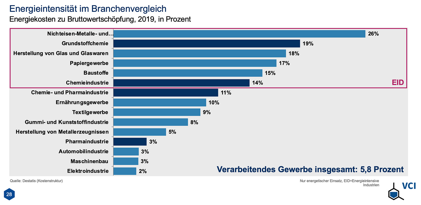 But it shouldn’t be surprising that BASF is talking its book. And the fact that a historic spike in energy prices causes problems for energy-intensive industries in Germany does not prove that low energy costs obtained by backroom deals with the Kremlin are responsible for the existence of the industry in the first place, or its competitive success in recent year. The influence of the industry and its short-sighted cost-cutting no doubt helped to create an infrastructural dependency, but that tells us little or nothing about sources of competitive advantage before 2022.