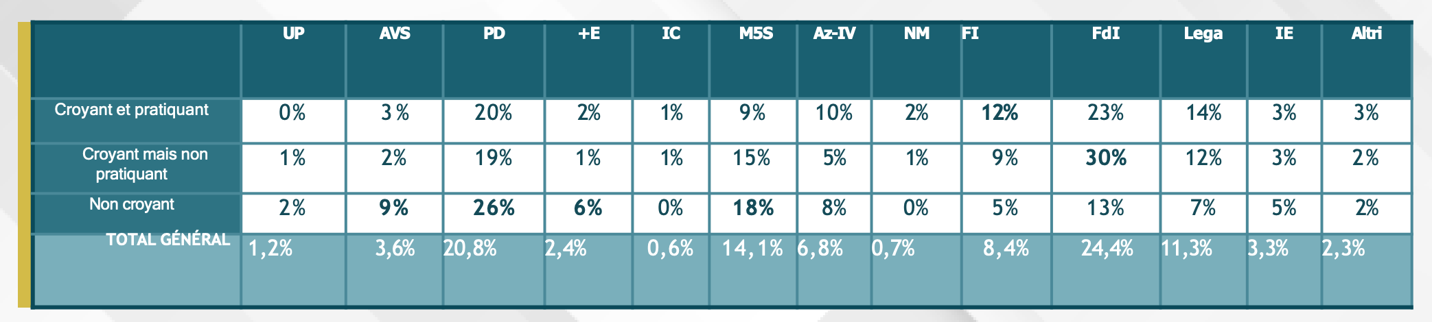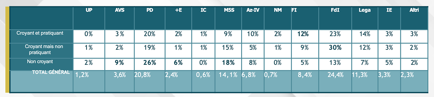 One fundamental divide within the Italian electorate is drawn on grounds of religion.