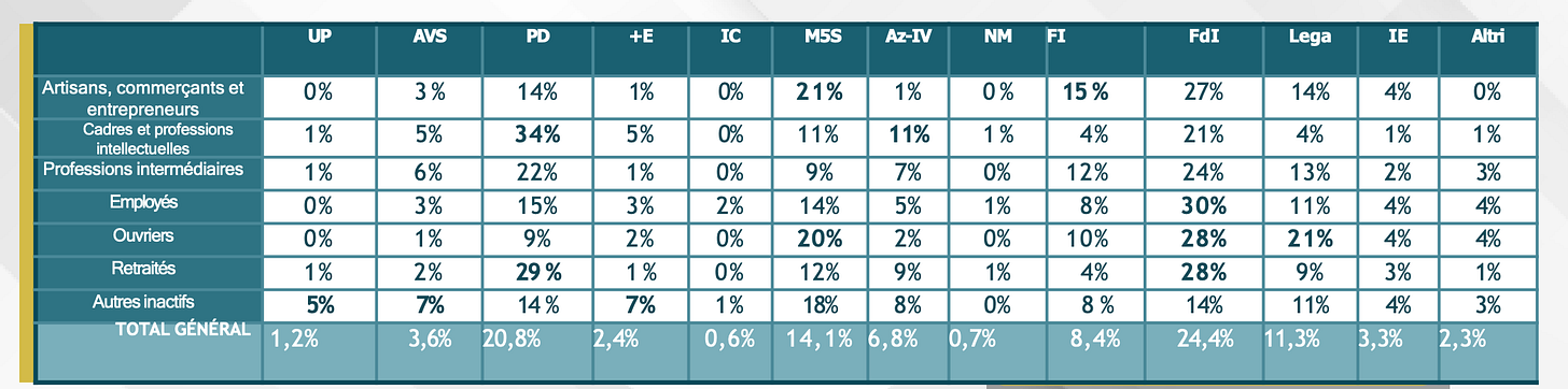 Chartbook #154 Who is going to vote for Italy's right-wing coalition?