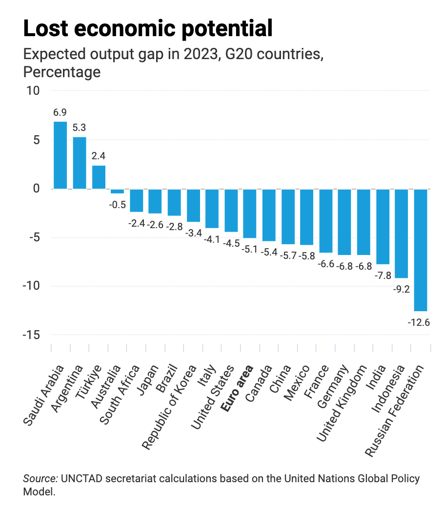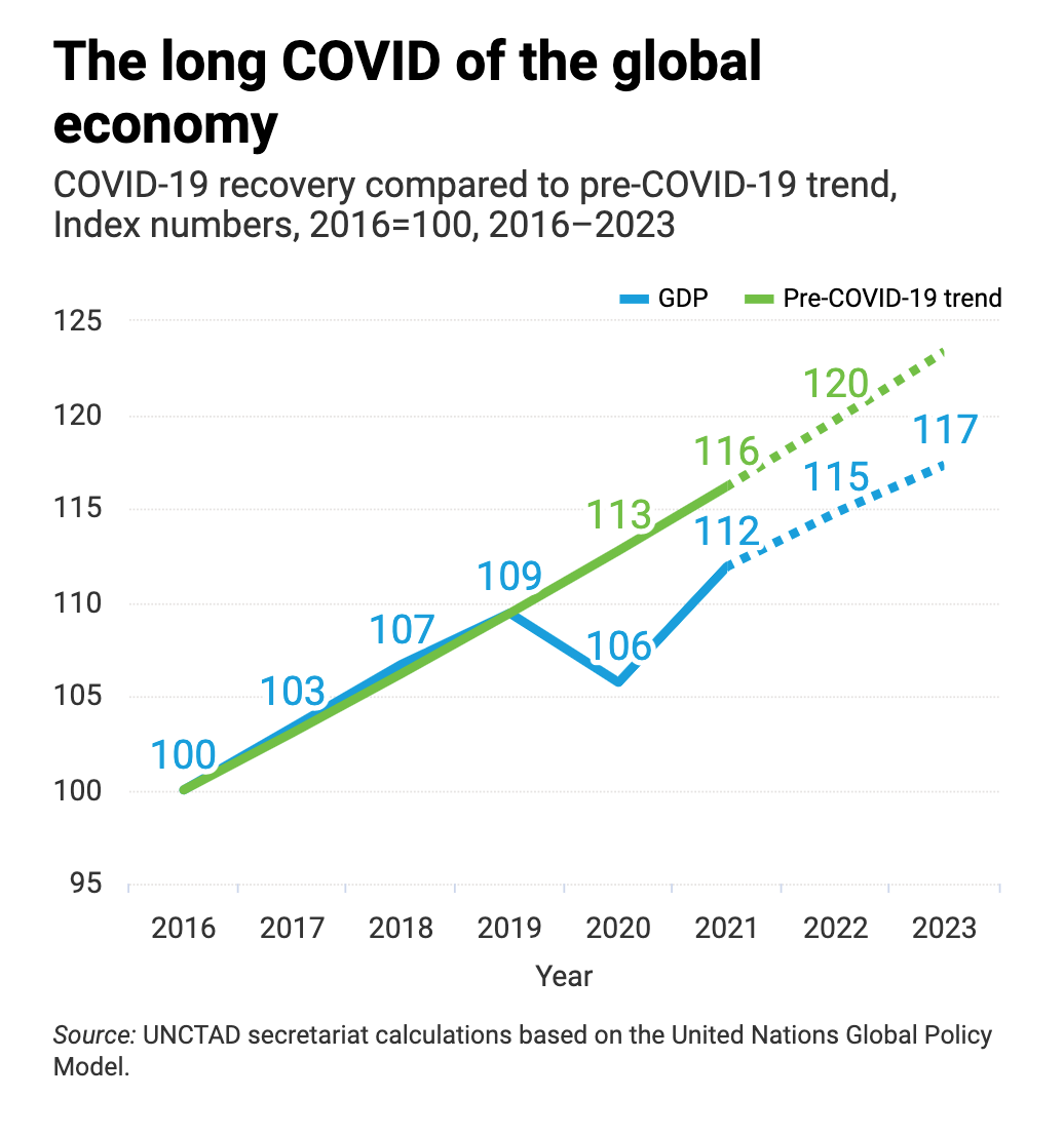 Despite the vigor of the rebound in 2021 the world economy is some way short of its pre-COVID trend.