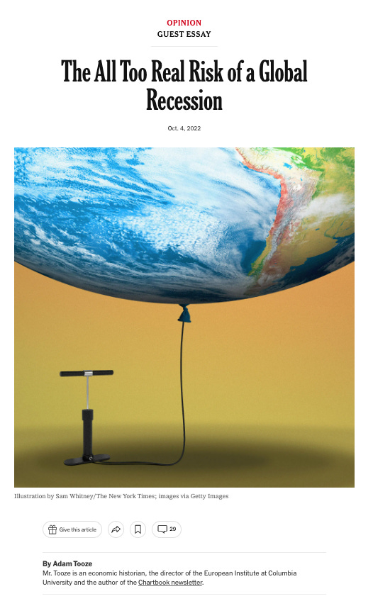 Did a piece for the NYT riffing on Chartbook #152 on the global anti-inflationary pivot and the attendant recession risk.