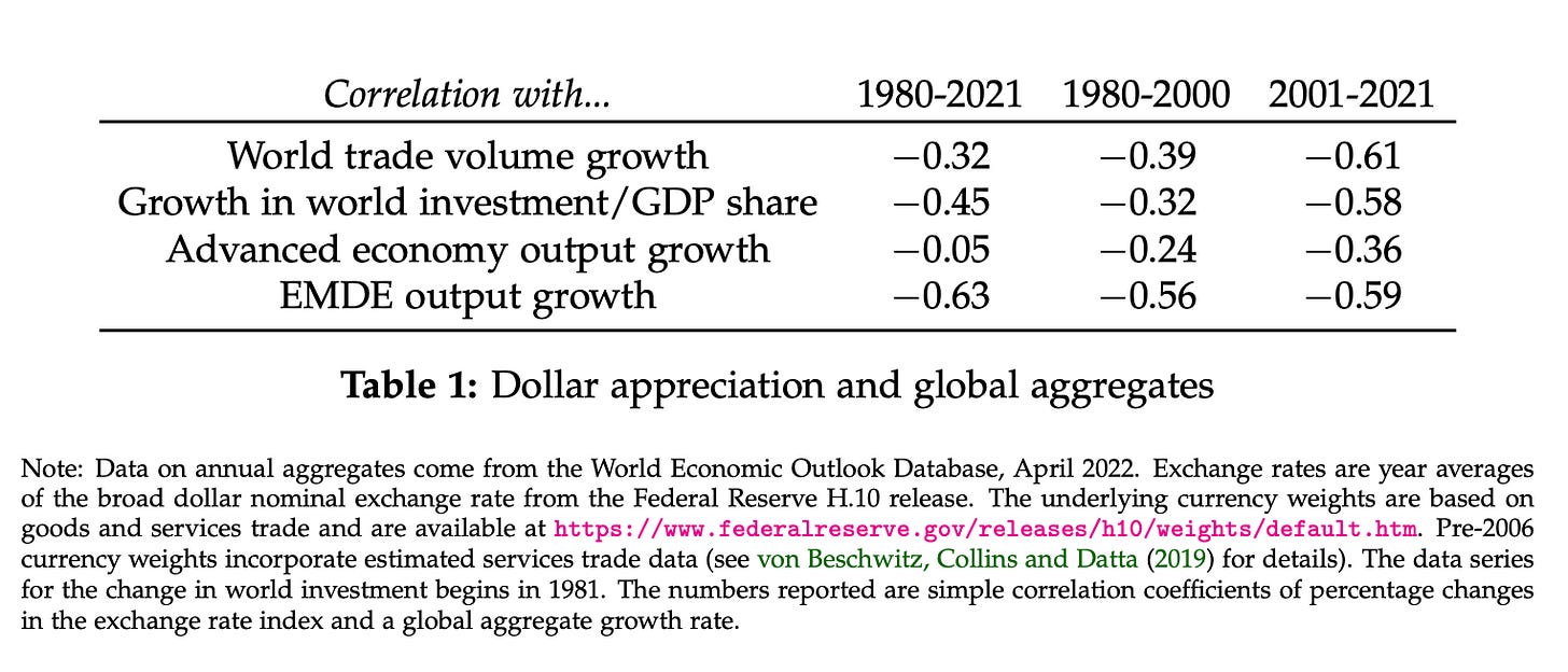 Over the entire period between 1980 and 2021 a one percent appreciation of the dollar is associated with growth in Emerging Market and Developing Economies (EMDE) that is 0.63 percent slower. Furthermore, this association has strengthened since the millennium. The impact on world trade, notably, has increased from -0.39 to -0.61.