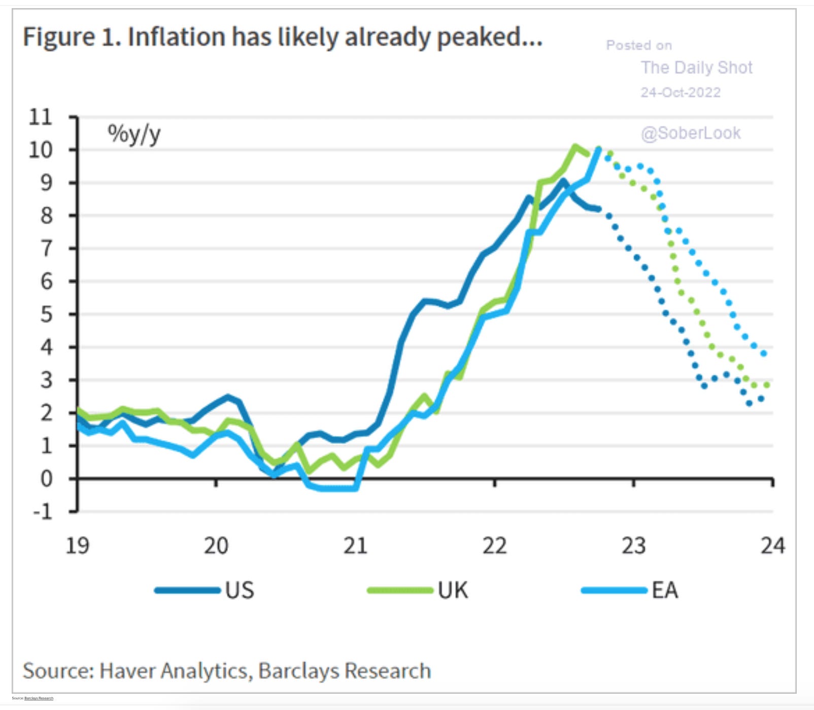 At this point, I don’t want to revert to the question of whether US inflation is actually transitory or not. Call it what you will, the consensus forecast right now is that inflation has peaked in the US, the Euro-area and the UK. And it is unlikely that the monetary policy turn of the last few months has very much to do with that. If central bank policy has an influence it will be mainly on what happens next.
