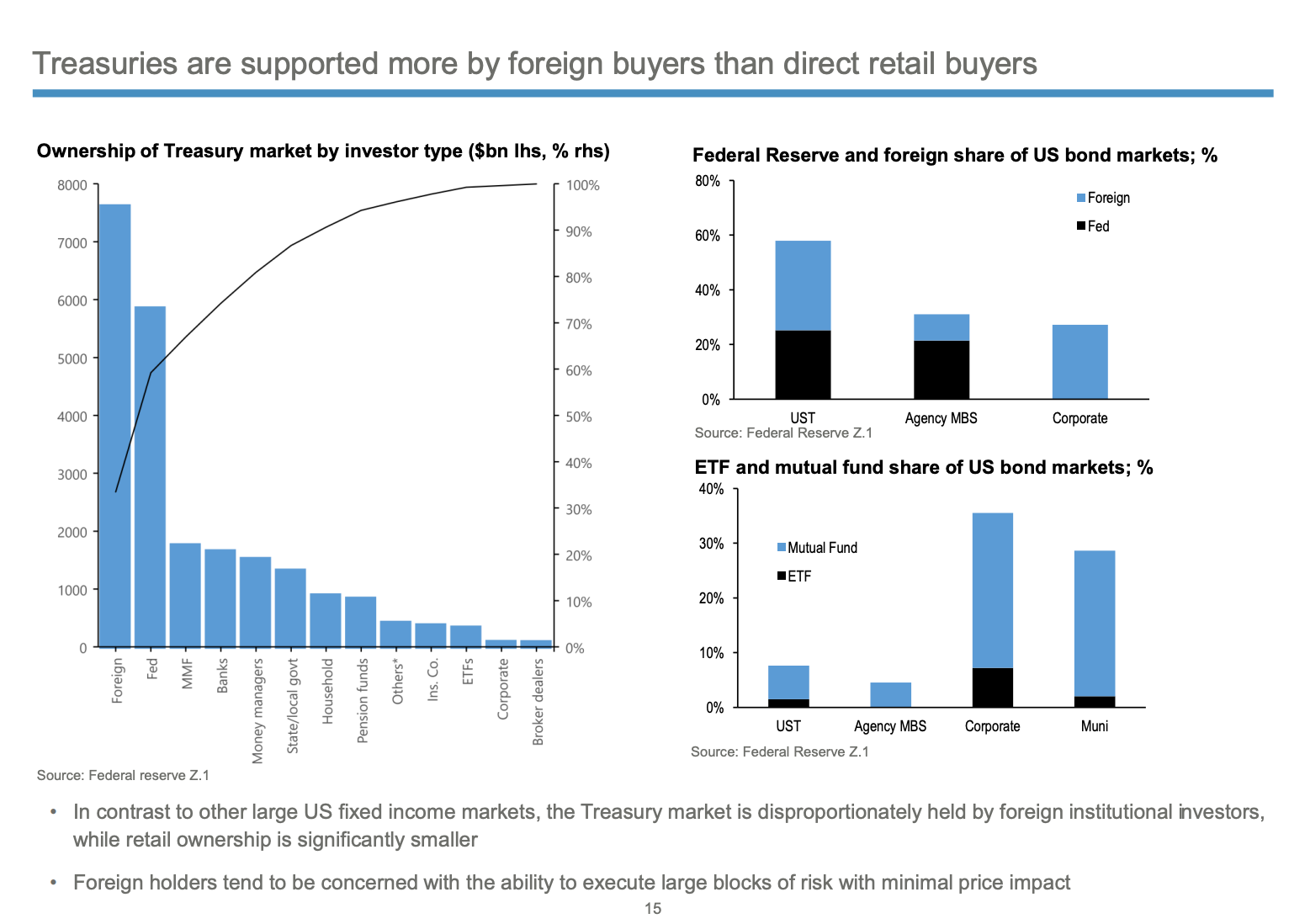 Part of the problem is that the range of investors holding treasuries is huge. The largest single group of Treasury investors are reserve managers from across the entire world.