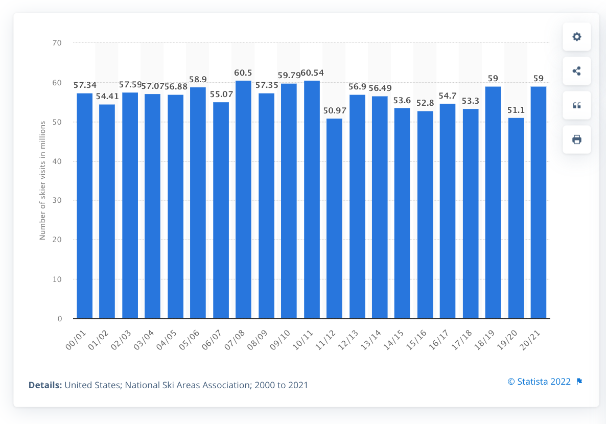 You might wager that the current plateau in the skiing business had something to do with climate change. A warmer world means that there is less snow to go around. More on that below. But, beyond lifestyle currents and the natural environment, the factor we should not ignore is political economy and corporate strategy. A market will remain static if there is no reason to invest in expansion, if the status quo is profitable for the major players.