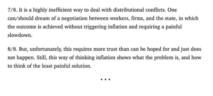 This does not mean that the current inflation does involve elements of a social process that could metaphorically be described as struggle. But the “struggle” in question is between different groups of producers over the size of their mark-ups and how much they can pass through to their customers and ultimately households as final consumers, another group that Blanchard does not mention. This kind of supply-side driven inflation has been modeled in an interesting way by Isabella M. Weber† Jesús Lara Jauregui‡ Lucas Teixeira§ Luiza Nassif Pires.