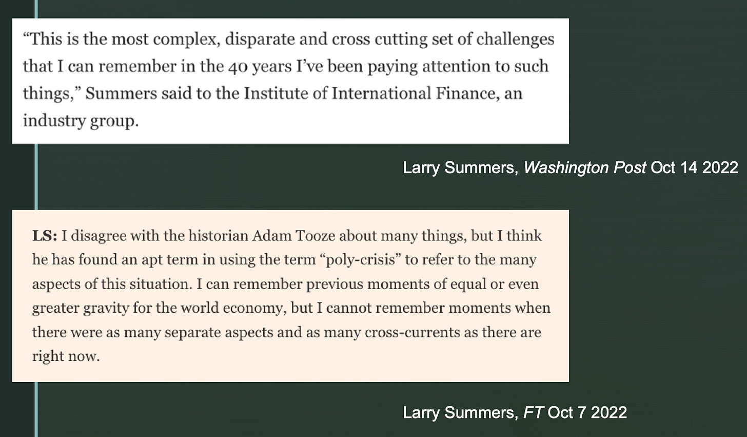 The point was grasped very clearly by Larry Summers in his embrace of the polycrisis concept.