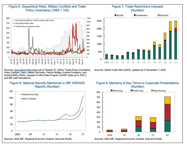 Following a panel at Davos on deglobalisation and a flurry of comment about polycrisis, I picked up those themes in my monthly column for the FT. Thanks to my lovely editors, the piece was squeezed into the paper on Tuesday. In this newsletter I want to tease out some of the points buried in the compressed version of the op-ed. The passages in quotes are from my original draft (before editing by the FT team):