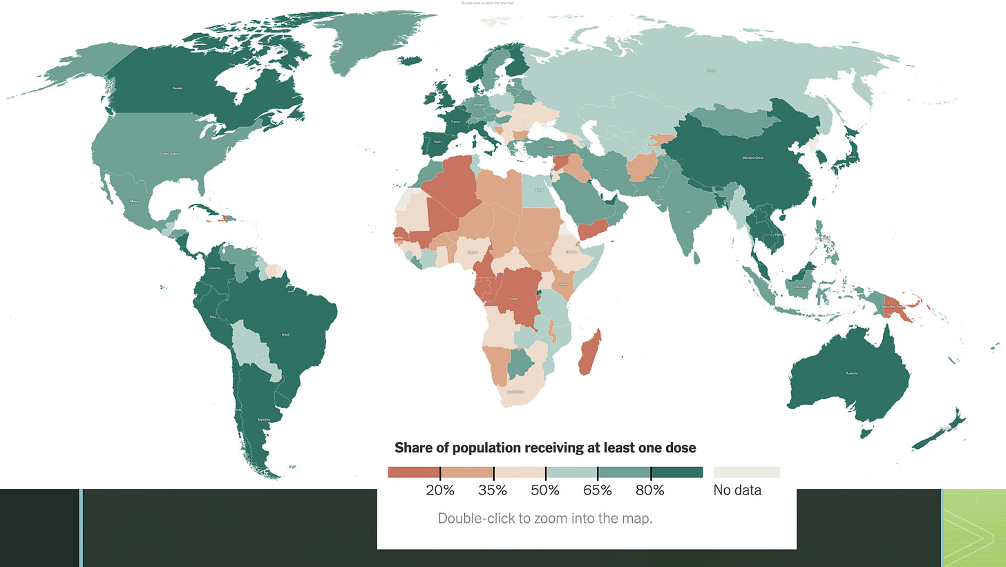 Here is the global COVID-vaccine map as of last week: