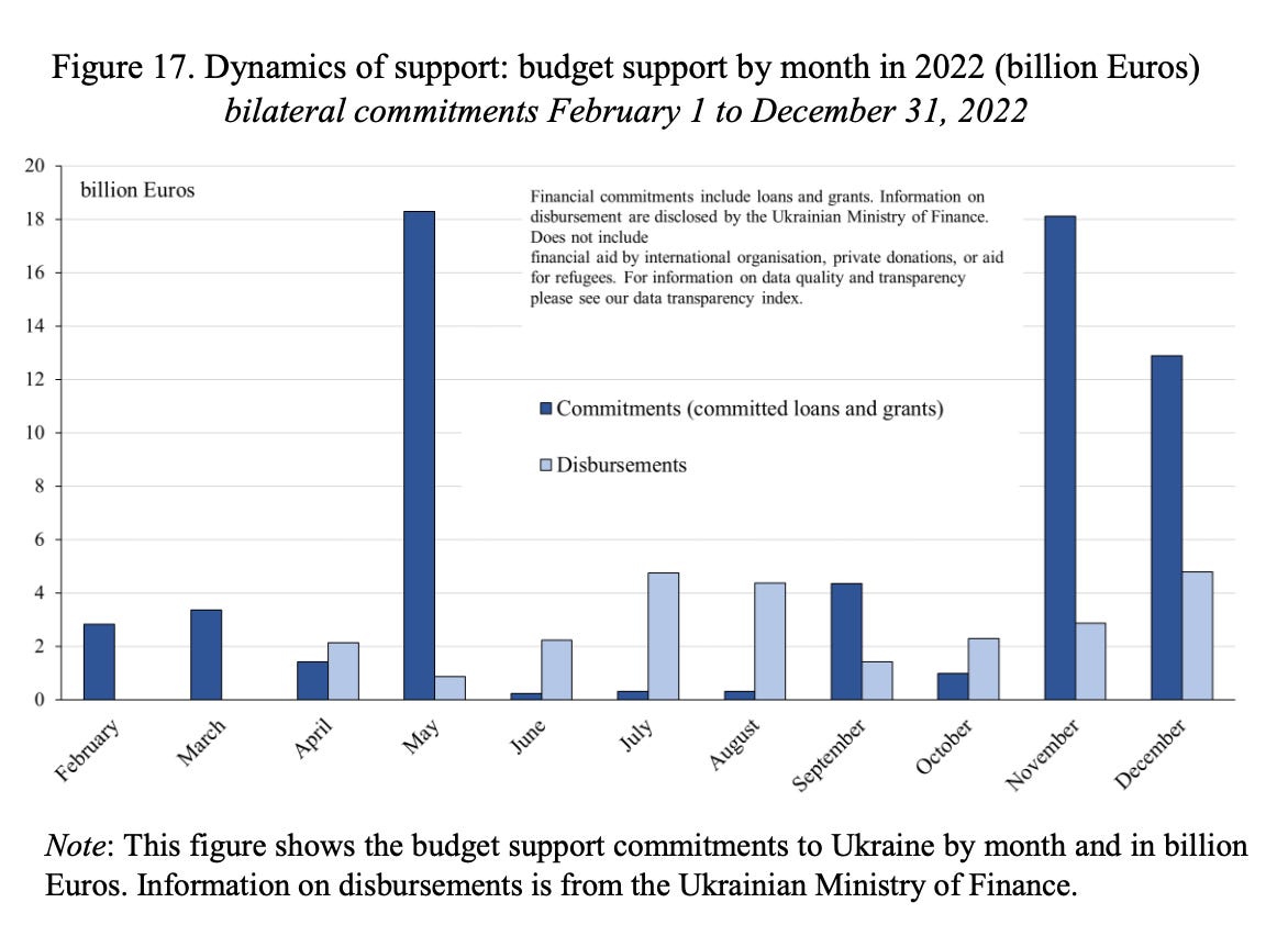One thing is for certain: The modesty of the support provided by its Western allies, leaves Ukraine’s war effort precariously balanced and the course of the war in 2023 highly uncertain. Ukraine may pull through. Its military are fighting remarkably well. Perhaps Russia will crumble. But if it does not, we should likely expect the “reality gap” to close in the direction of greater financial and military aid. There is evidence for this in the Kiel data.