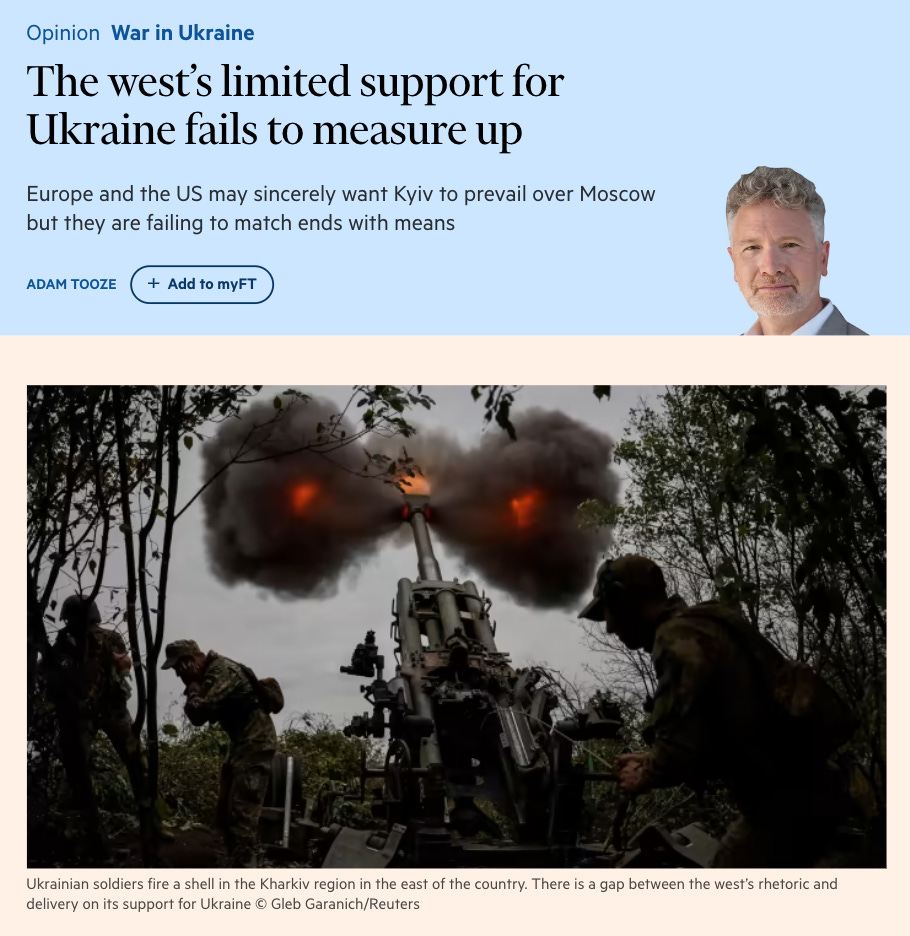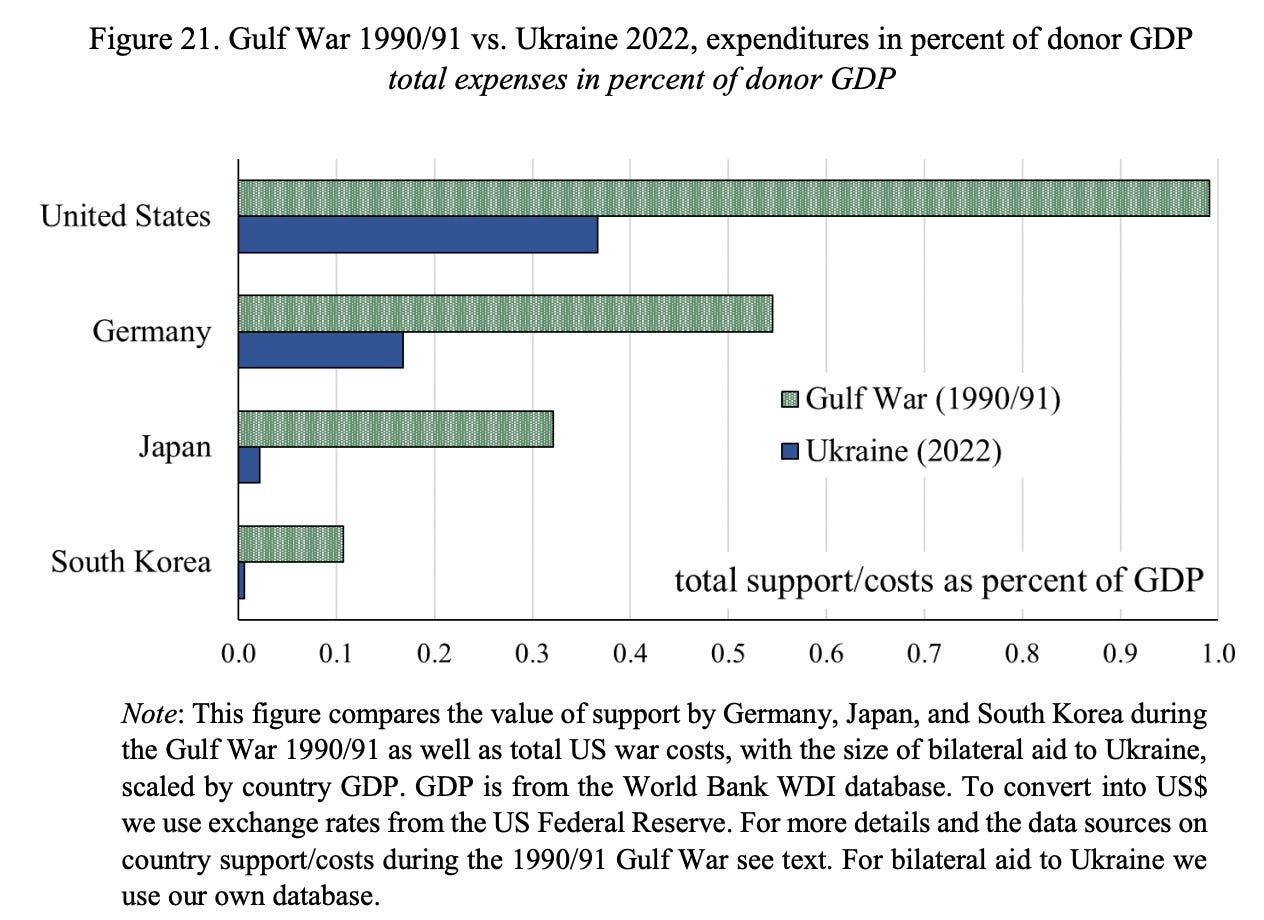 The point of my op-ed is not that Europe and the United States should deliver vastly greater aid to Ukraine. One may want to make the case for that, but that is a separate issue. The point of my op-ed is that the Kiel data reveal a vast gap between the declared intentions of the United States and Europe in backing Ukraine and what they are actually delivering.
