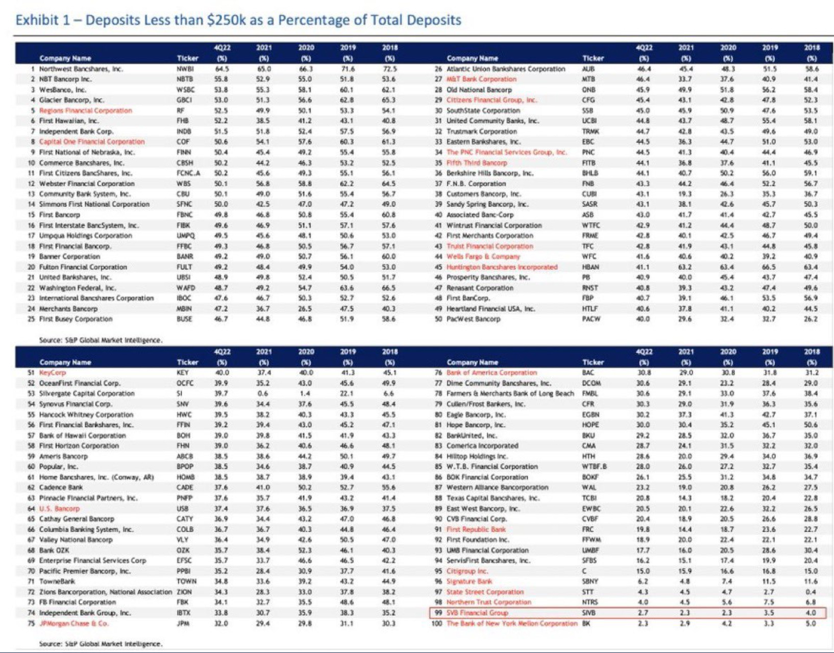 At SVB at the end of 2022 only 2.7 percent of deposits were covered by FDIC insurance! As Noah Smith explains: