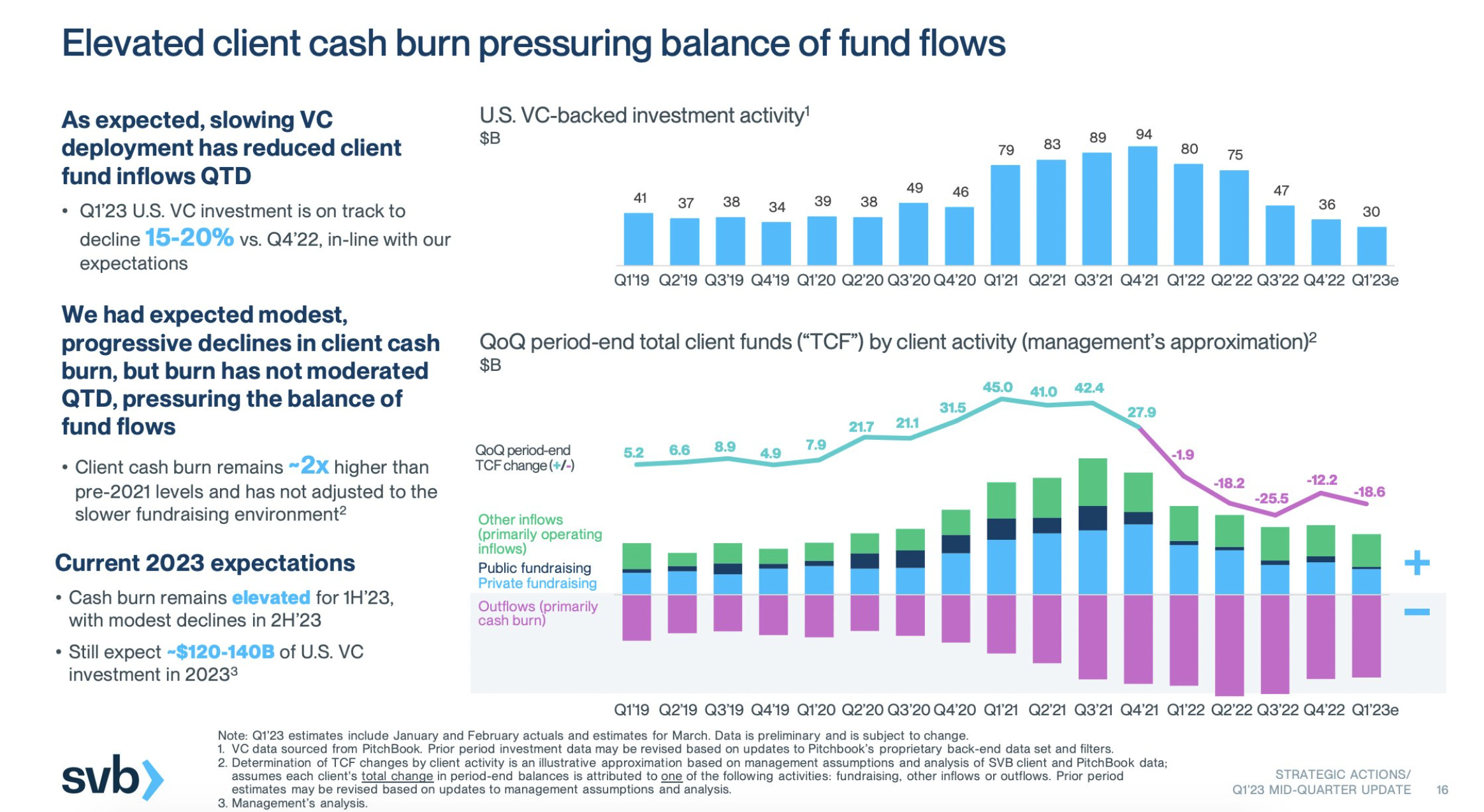 Guess where the outflows started in early 2023? The stressed tech sector! Since Q4 2021 VC activity has been declining in Silicon Valley and that was showing up in SVB’s balance sheet: