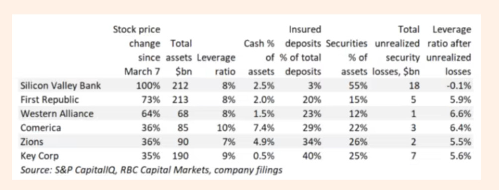 Rob Armstrong at Unhedged has the list of the smaller banks that have been int eh crosshairs.