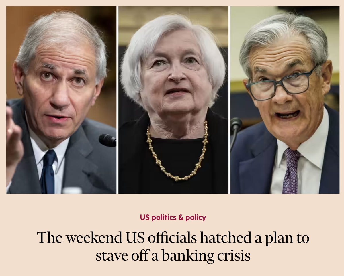 At the weekend the Treasury, Fed, FDIC stepped in to stop developing bank run getting any worse.