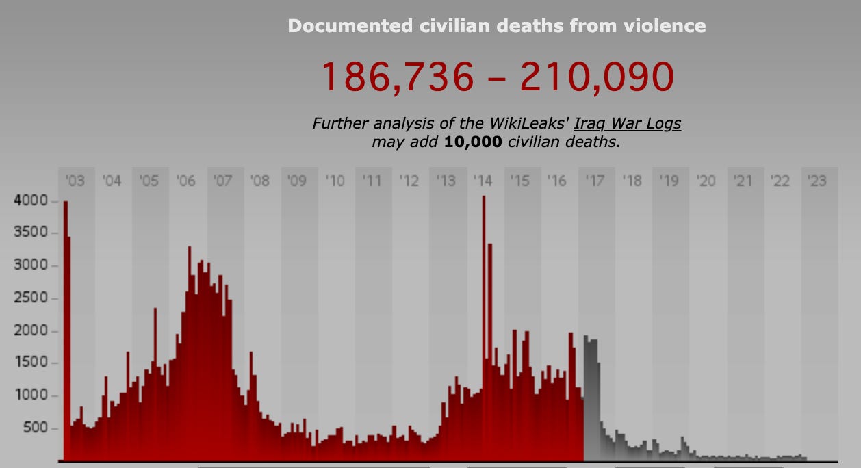 This the narrowest measure of casualties: only those deaths attributable directly to violence. Broader estimates of excess deaths add hundreds of thousands to the death toll.