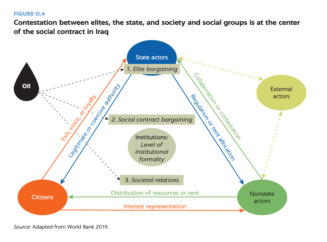 But, as the World Bank continues: “to achieve these outcomes, Iraq would need to implement reforms with payoffs farther in the future than its ruling elites have yet shown interest in.” And one can be under no illusions about the political and social forces that overdetermine the disastrous status quo. As the World Bank experts remark, the destruction of the Baathist state by the occupation authorities after 2003 created a dangerous vacuum: