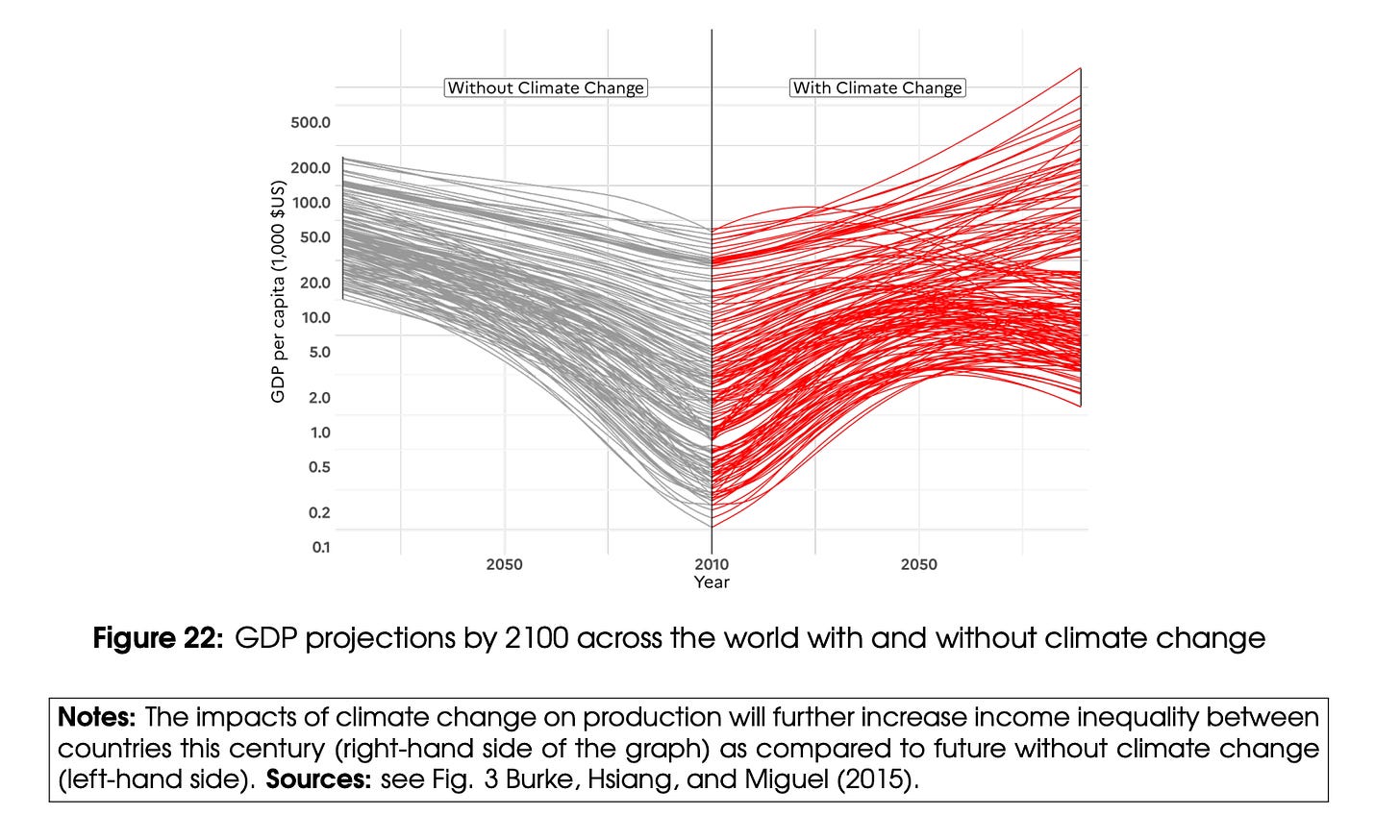 Whether or not climate impacts will really remain so contained is, surely, an open question. The modeling that Chancel et al build on, would seem to include no dramatic tipping points, large-scale migration flows etc. They do point to at least one spillover effect - infectious disease. In a climate-changed world, infectious diseases like dengue fever may not remain confined to the tropics. By 2050 more than half the world’s population may be at risk.