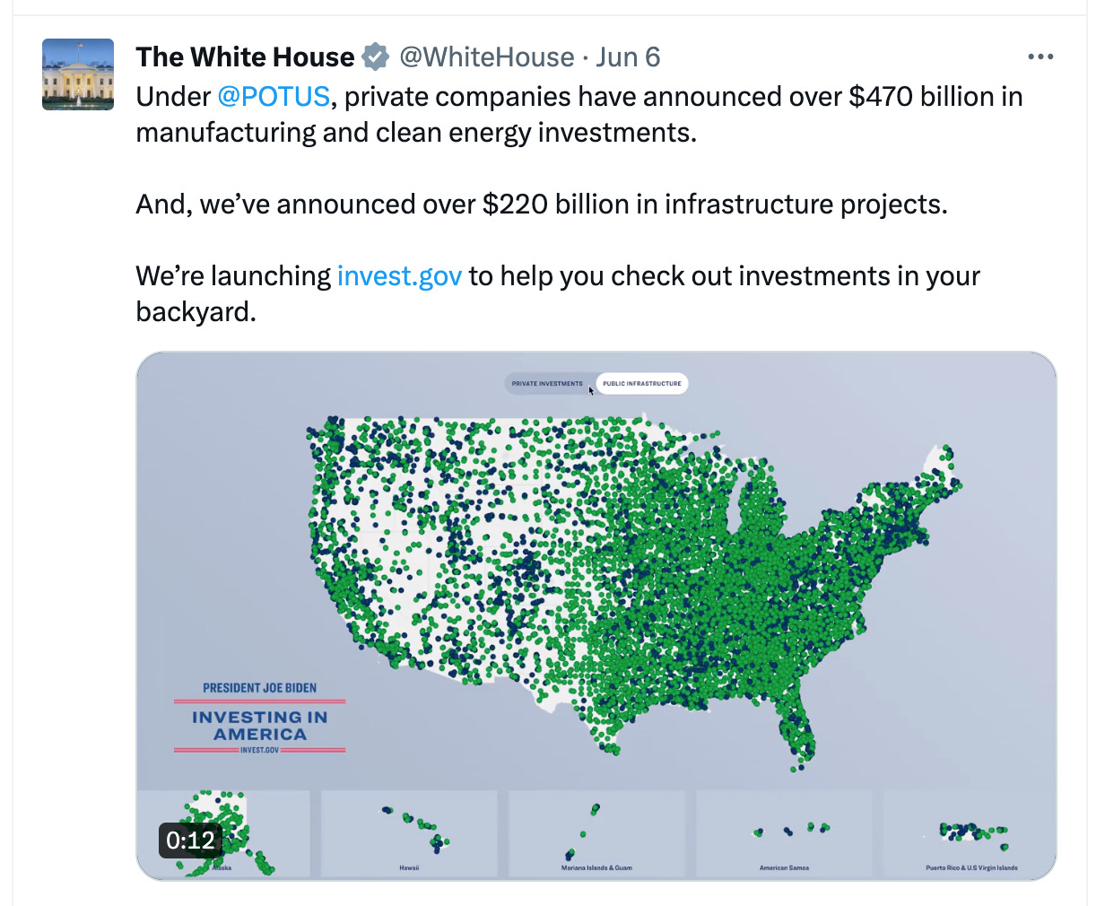 On the one hand the infrastructure, CHIPs and Inflation Reduction Acts seem to be translating into a real investment and construction boom.