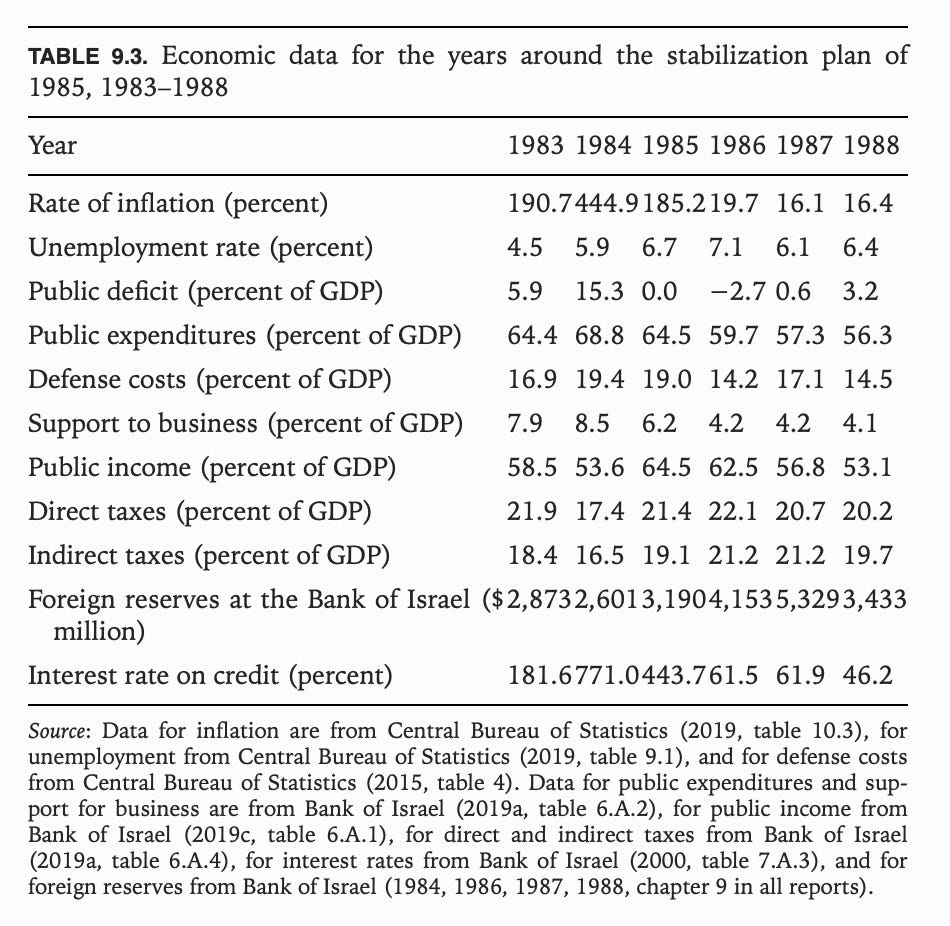 The 1979 peace agreement with Egypt may not have brought peace to the Middle East in comprehensive sense. It left the fate of the Palestinian people undecided. But as Zeira points out in his excellent survey, The Israeli Economy, there is a world of difference between maintaining an occupation regime over a lightly armed civilian population, however brutal, and fighting all-out war of national survival. The peace deal with Egypt turned Israel’s security problem from an impossible burden to a manageable economic and fiscal problem. It was this security settlement that gave monetary stabilization and central bank leadership a chance. The story is brilliantly told in Krampf’s The Israeli Path to Neoliberalism (2018).