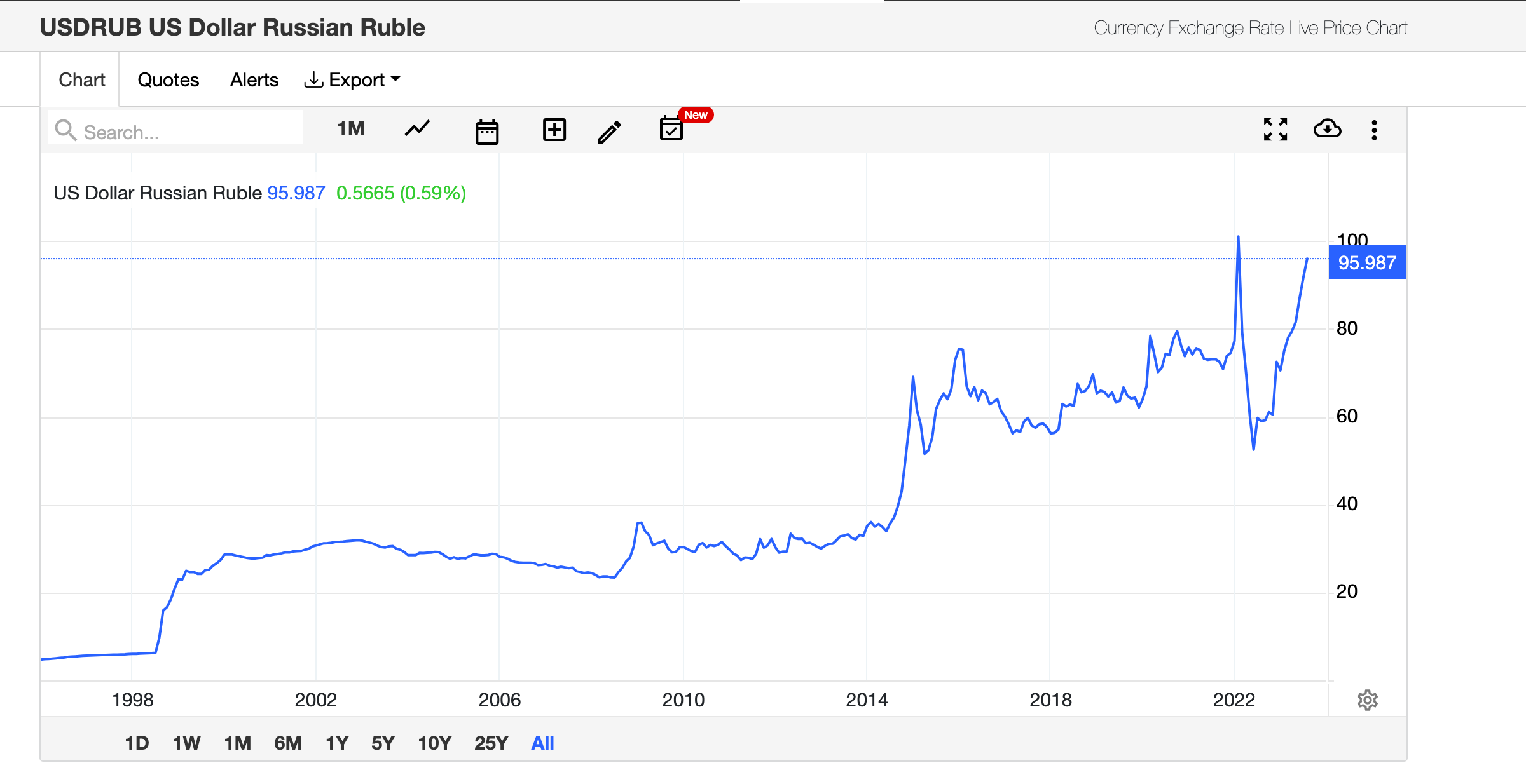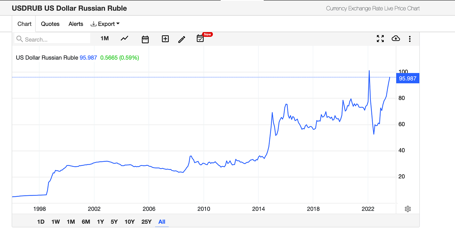 In 2022 imports fall sharply, but have now recovered. The reason that the currency is depreciating is that exports have followed the opposite pattern. Exports boomed in 2022 and have now slumped under the double impact of global energy price movements and sanctions. The result is a shift in the demand and supply of rubles and foreign currency.