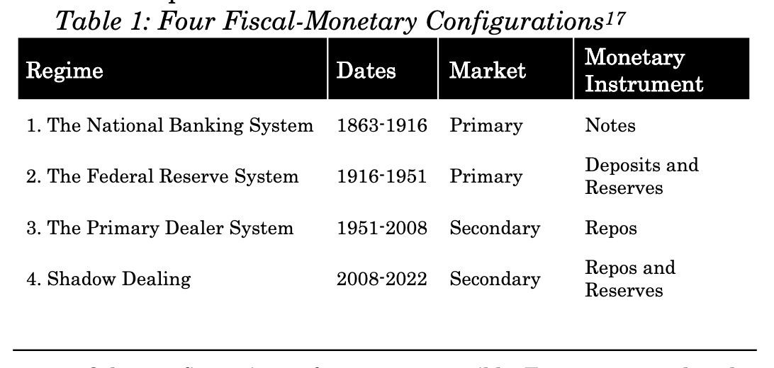 As Menand and Younger comment: “Though smaller dealers remained independent (e.g., Jeffries, Cantor Fitzgerald), for the first time in modern financial history (i.e. since the formation of a large secondary market in Treasuries in the 1950s) the majority of dealer activity was performed within BHCs.” The capital market-based-non-bank-primary dealer model first shaped in the 1950s was finished.