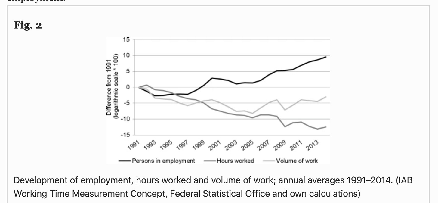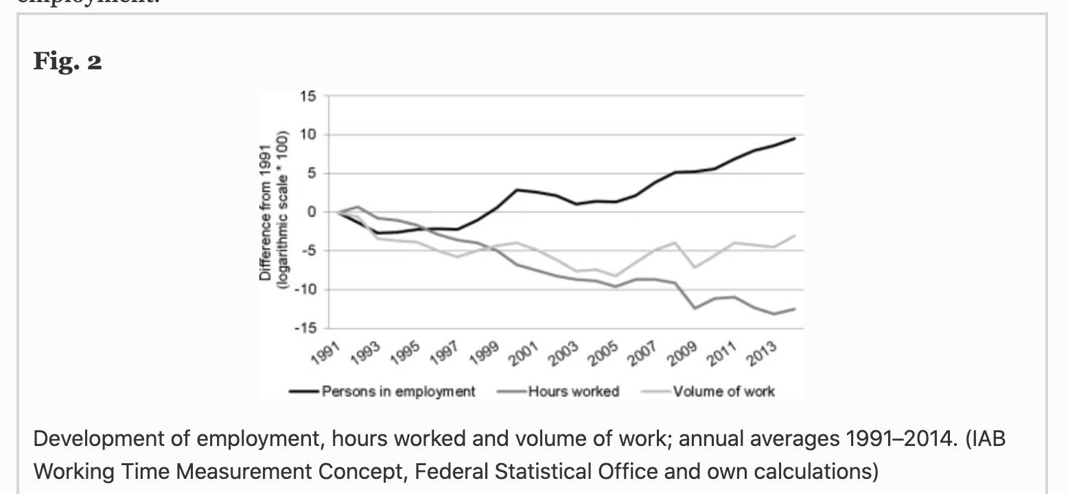 I cite here the graphs from Susanne Wanger, Roland Weigand and Ines Zapf’s report on “Measuring Hours Worked in Germany”, in the 2016 volume of Journal for Labour Market Research.