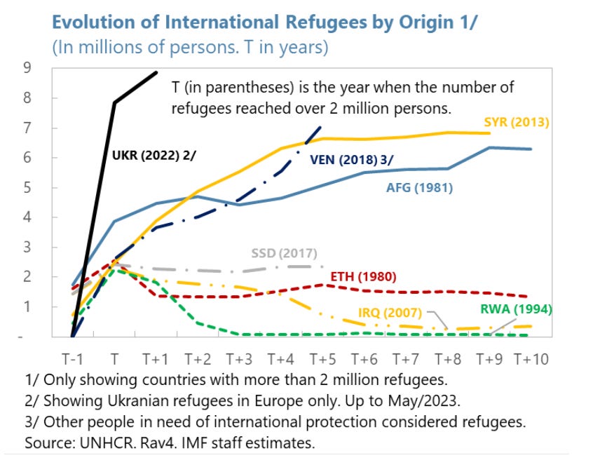 This collapse in economic activity reflects the disruption and destruction, the mobilization of workers for war and the flight of millions of Ukrainians out of the country. Ukraine’s exodus was the biggest and most rapid refugee movement seen worldwide in almost half a century.